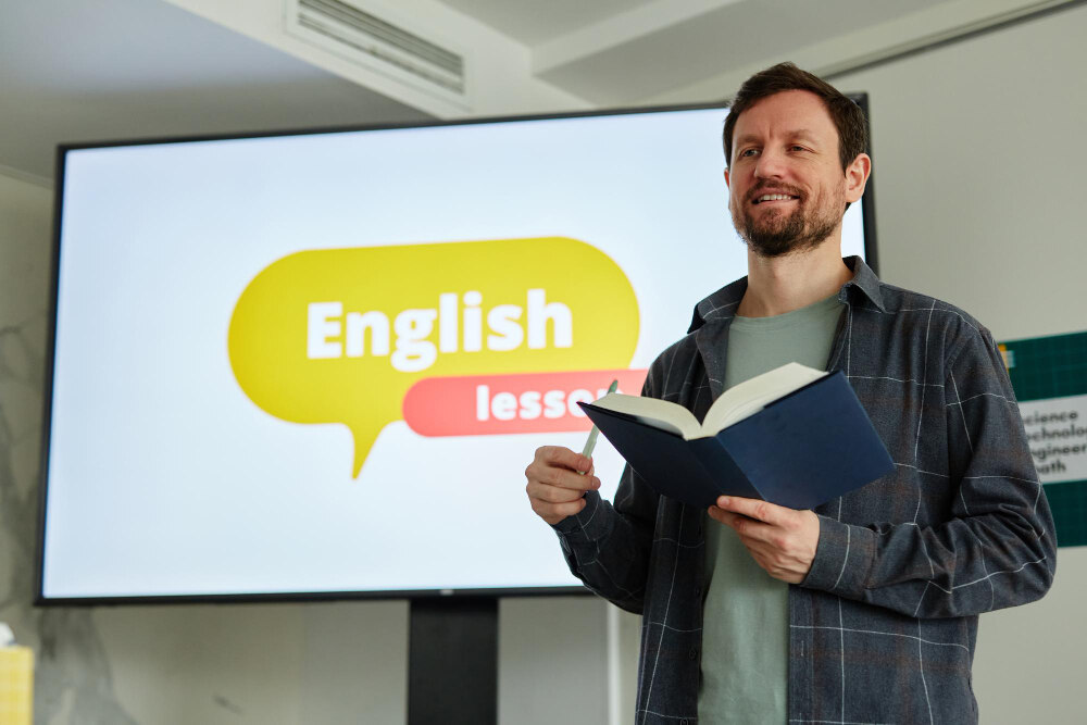 El profesor de inglés debe tener sólidos conocimientos de vocabulario y gramática. Se encarga de mejorar la comprensión lectora, el writing y el listening.